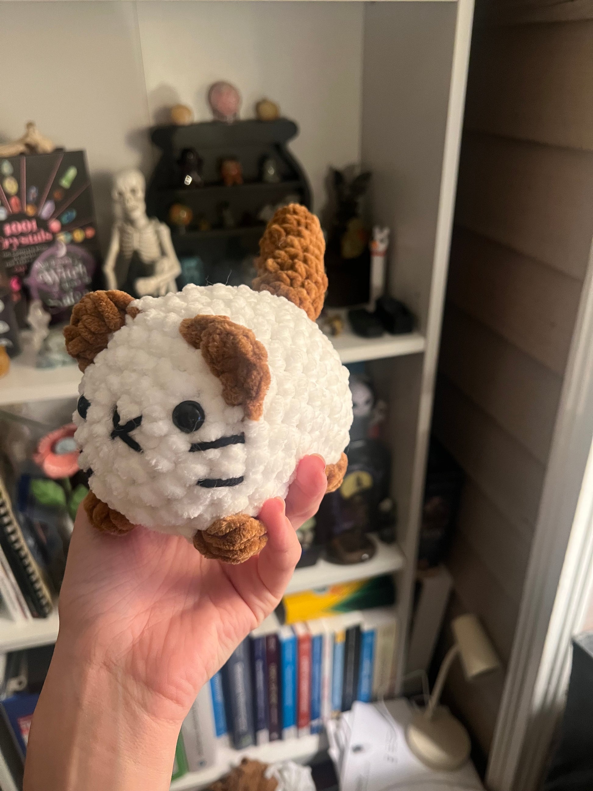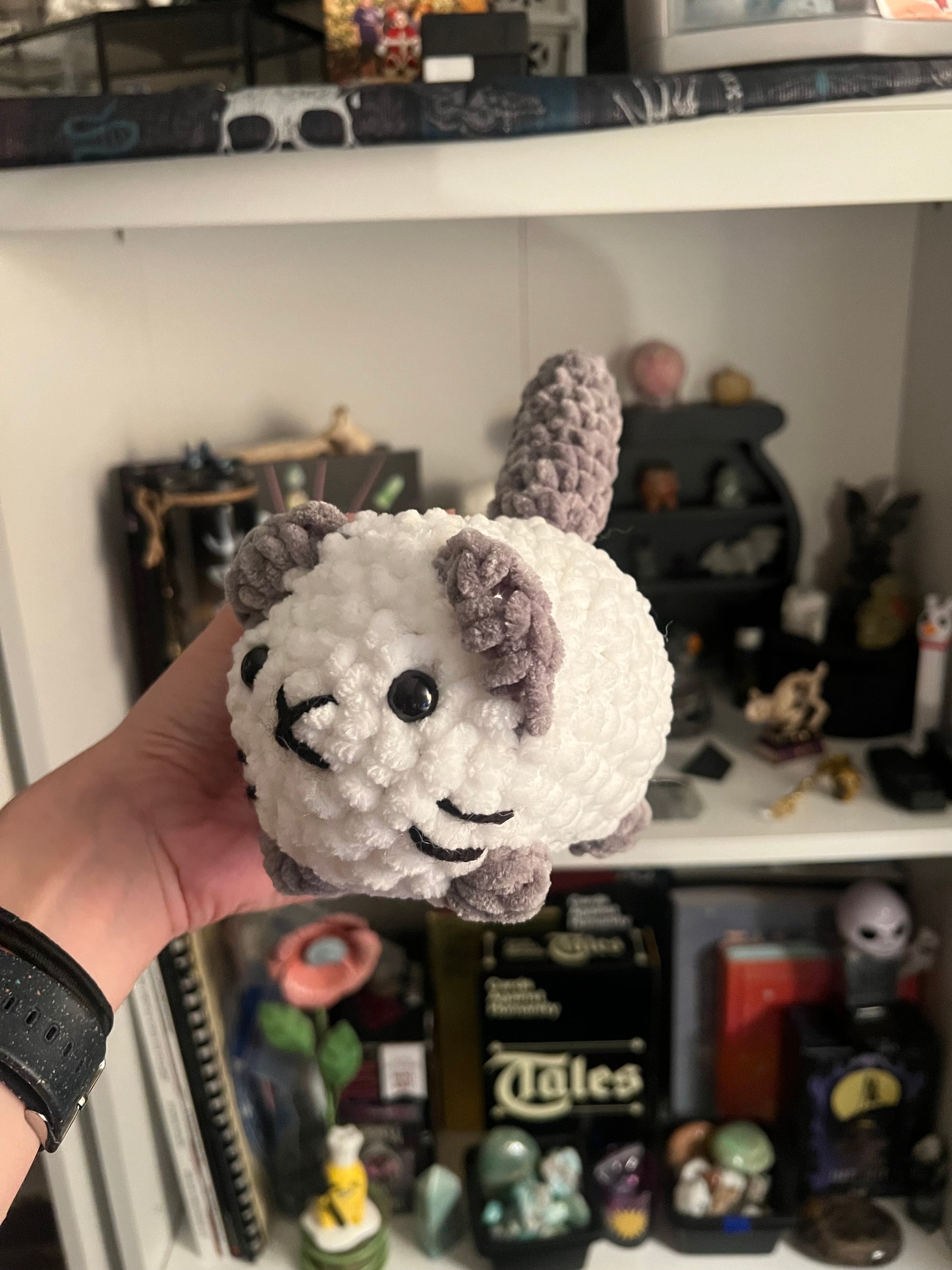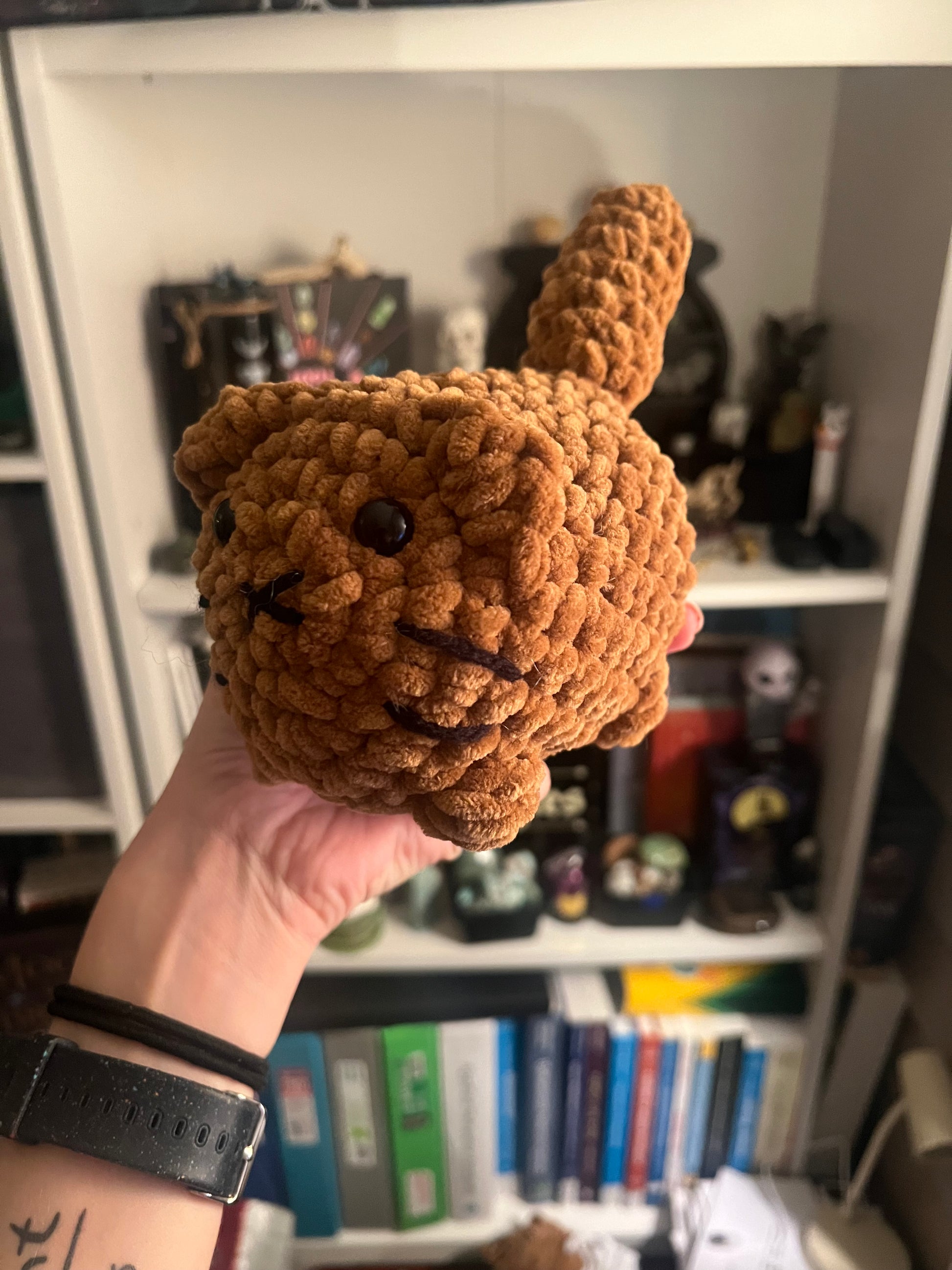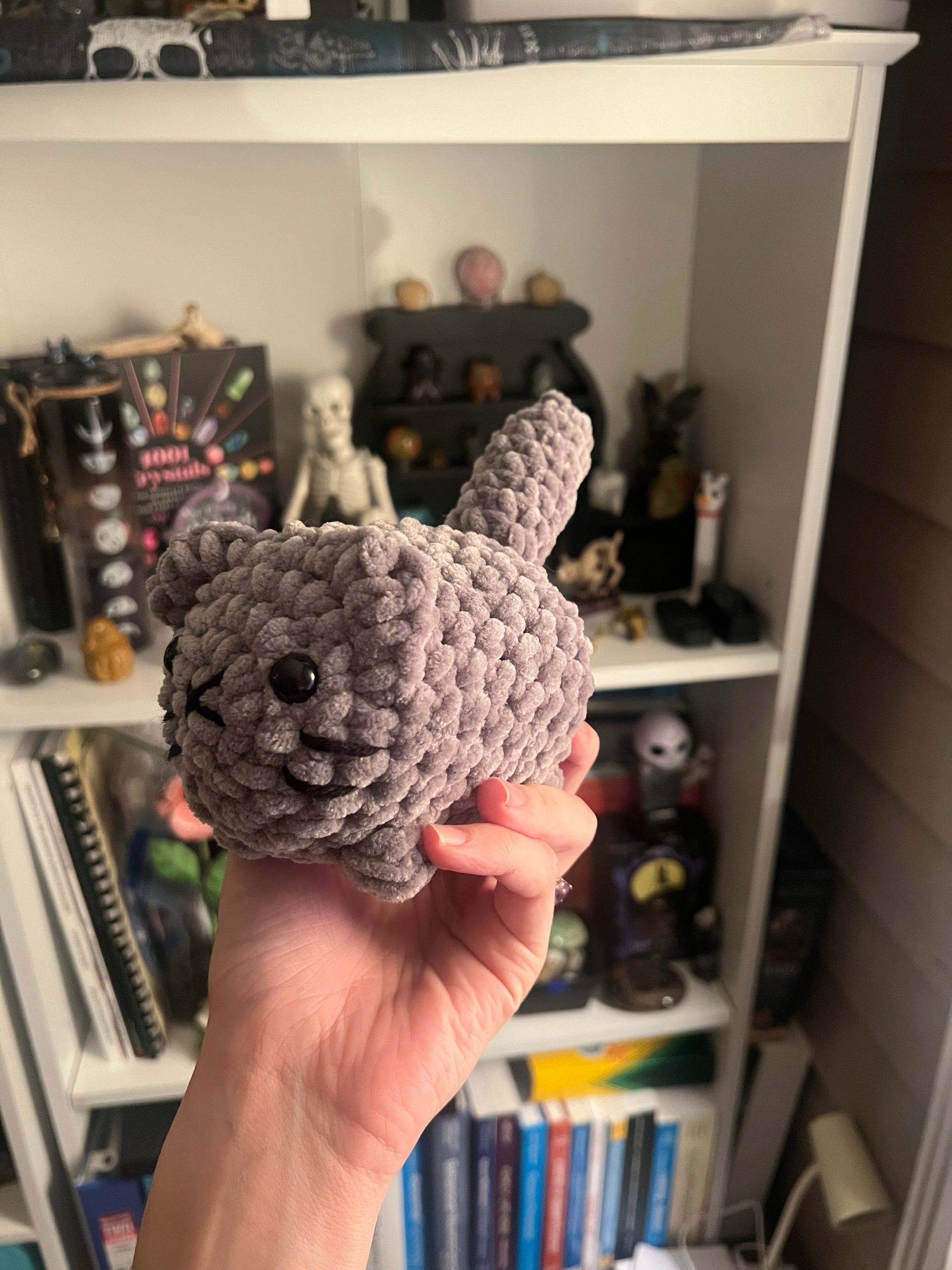 A custom pattern created by Blue but inspired by Annie Carraway's design, made in a variety of colors to represent all types of kitten colors.