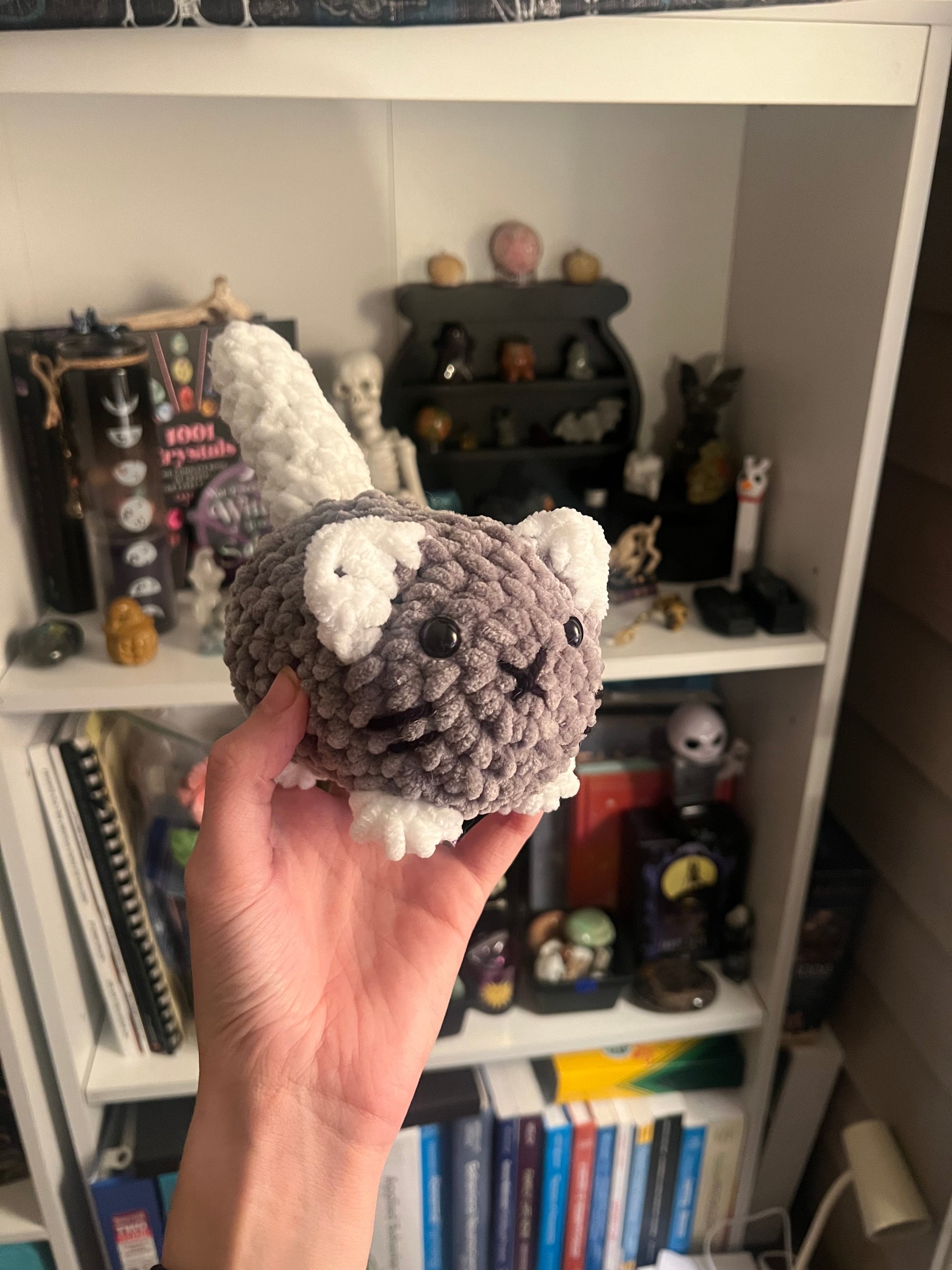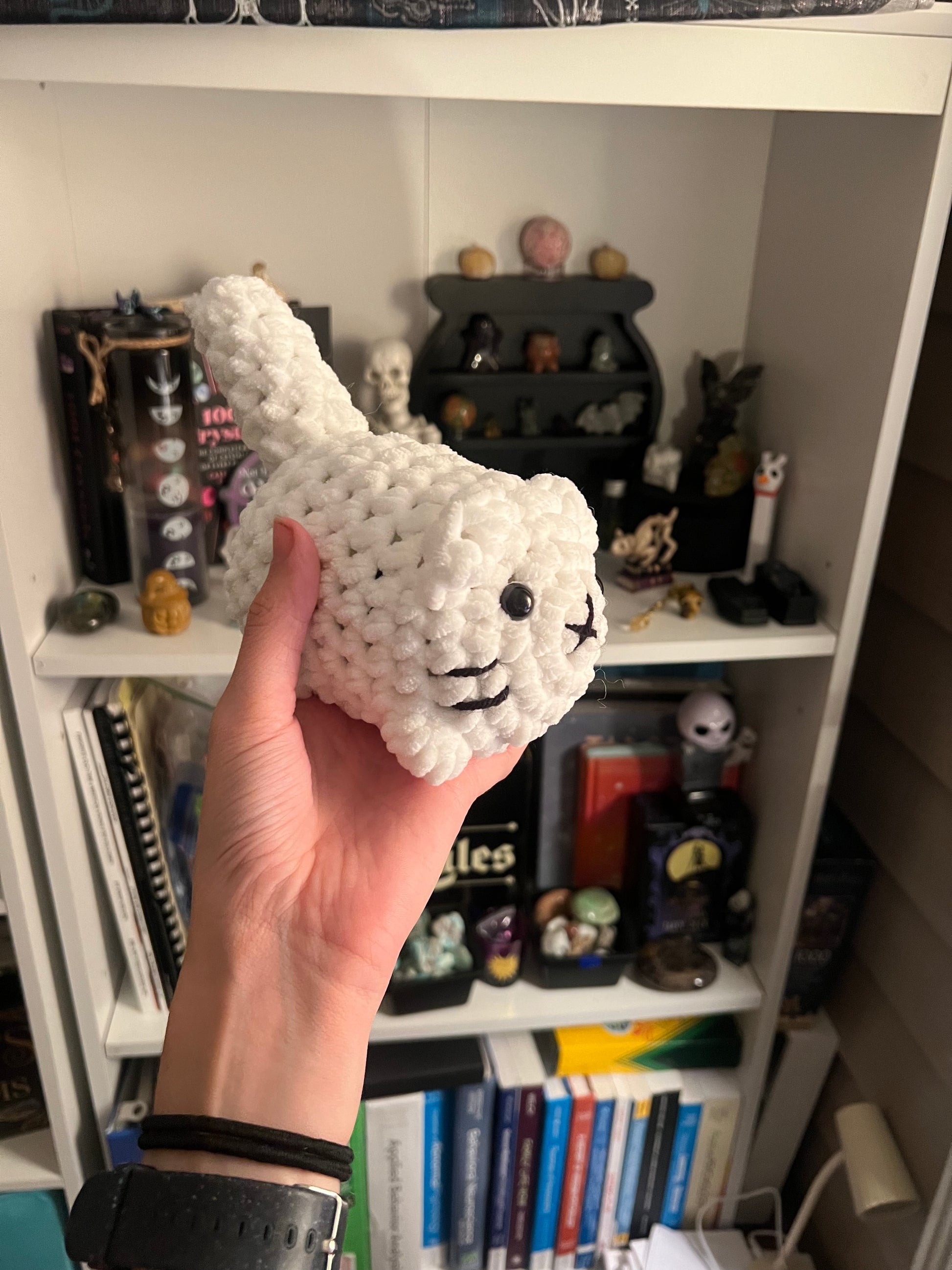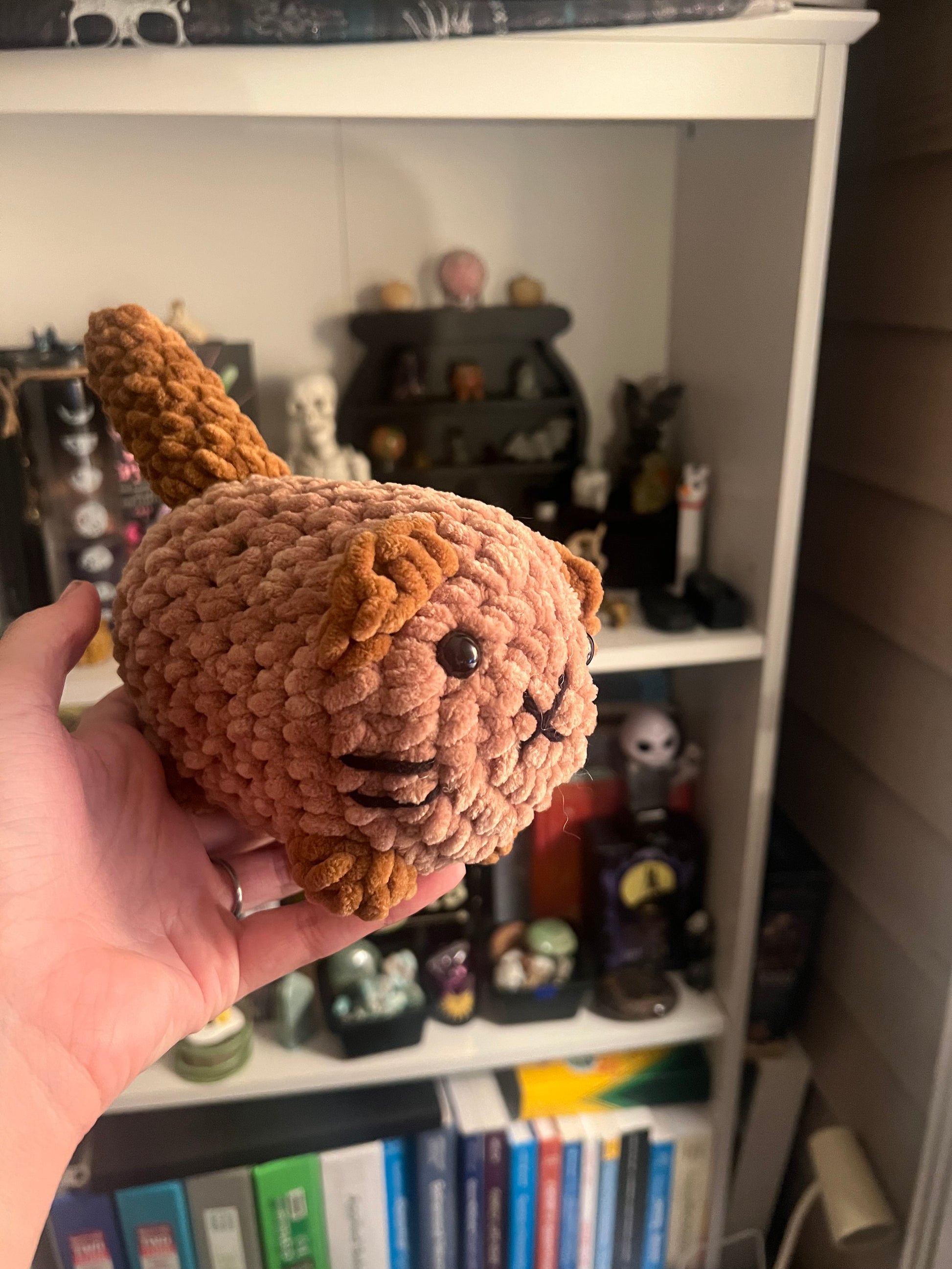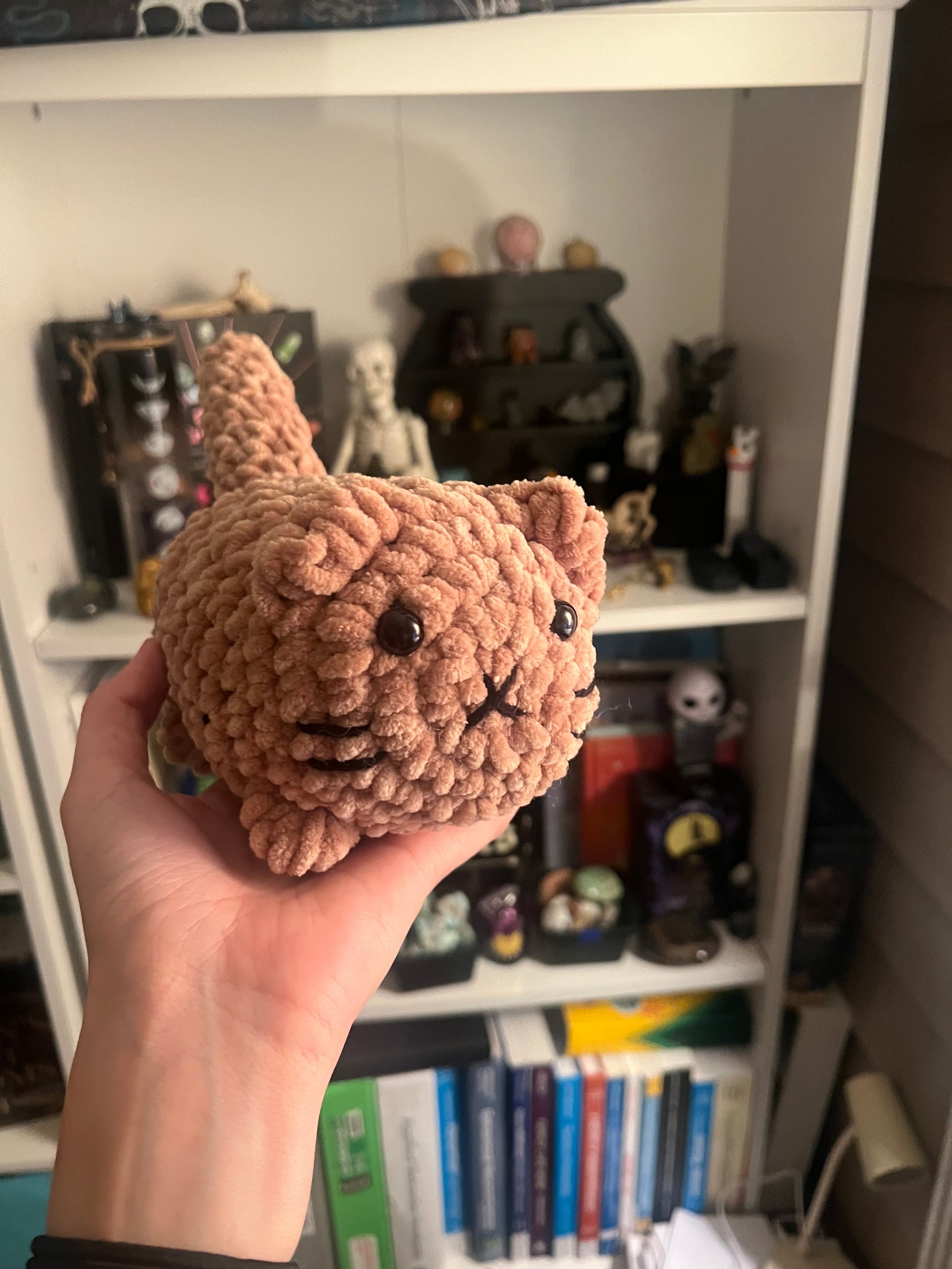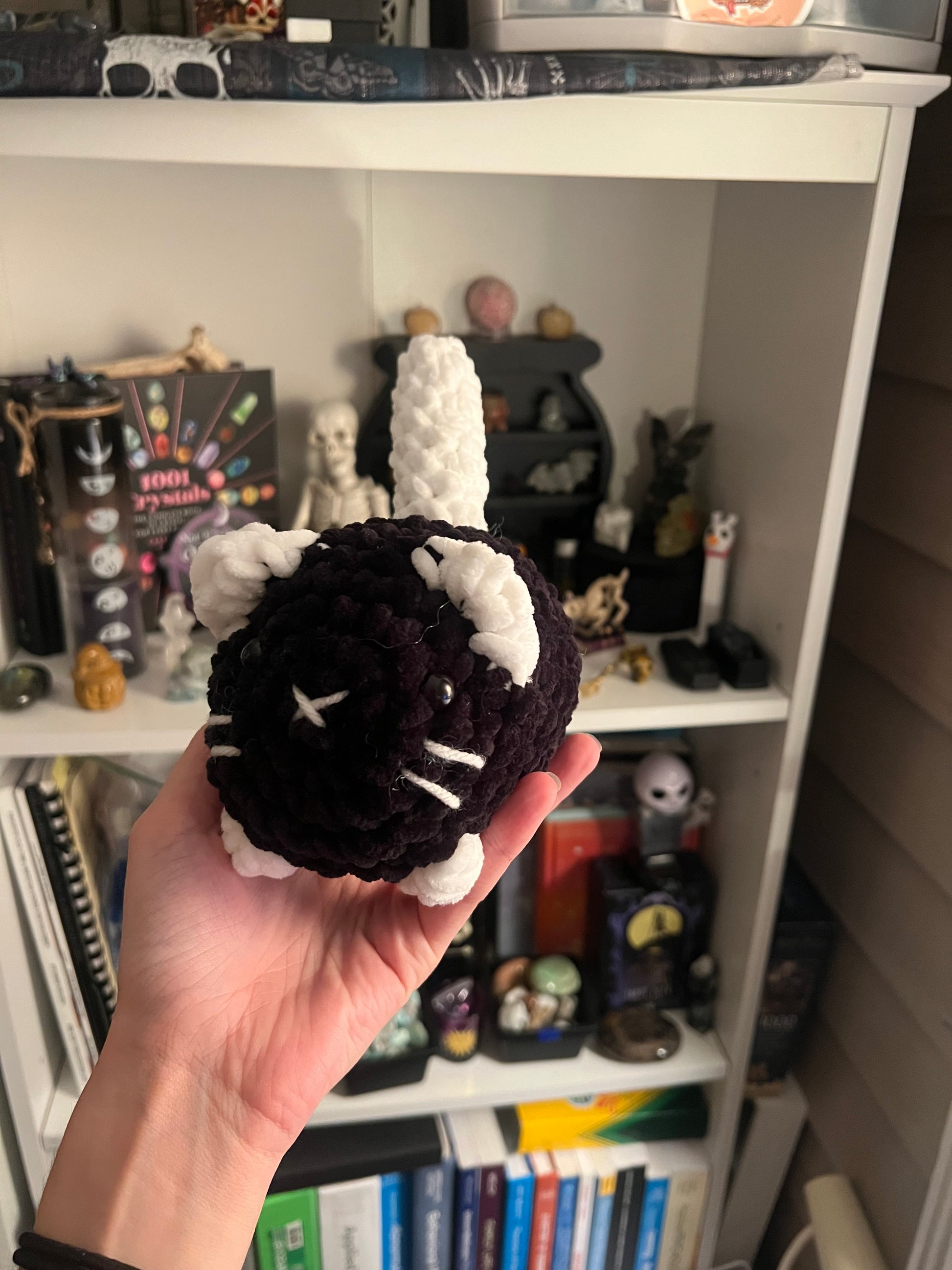 A custom pattern created by Blue but inspired by Annie Carraway's design, made in a variety of colors to represent all types of kitten colors.