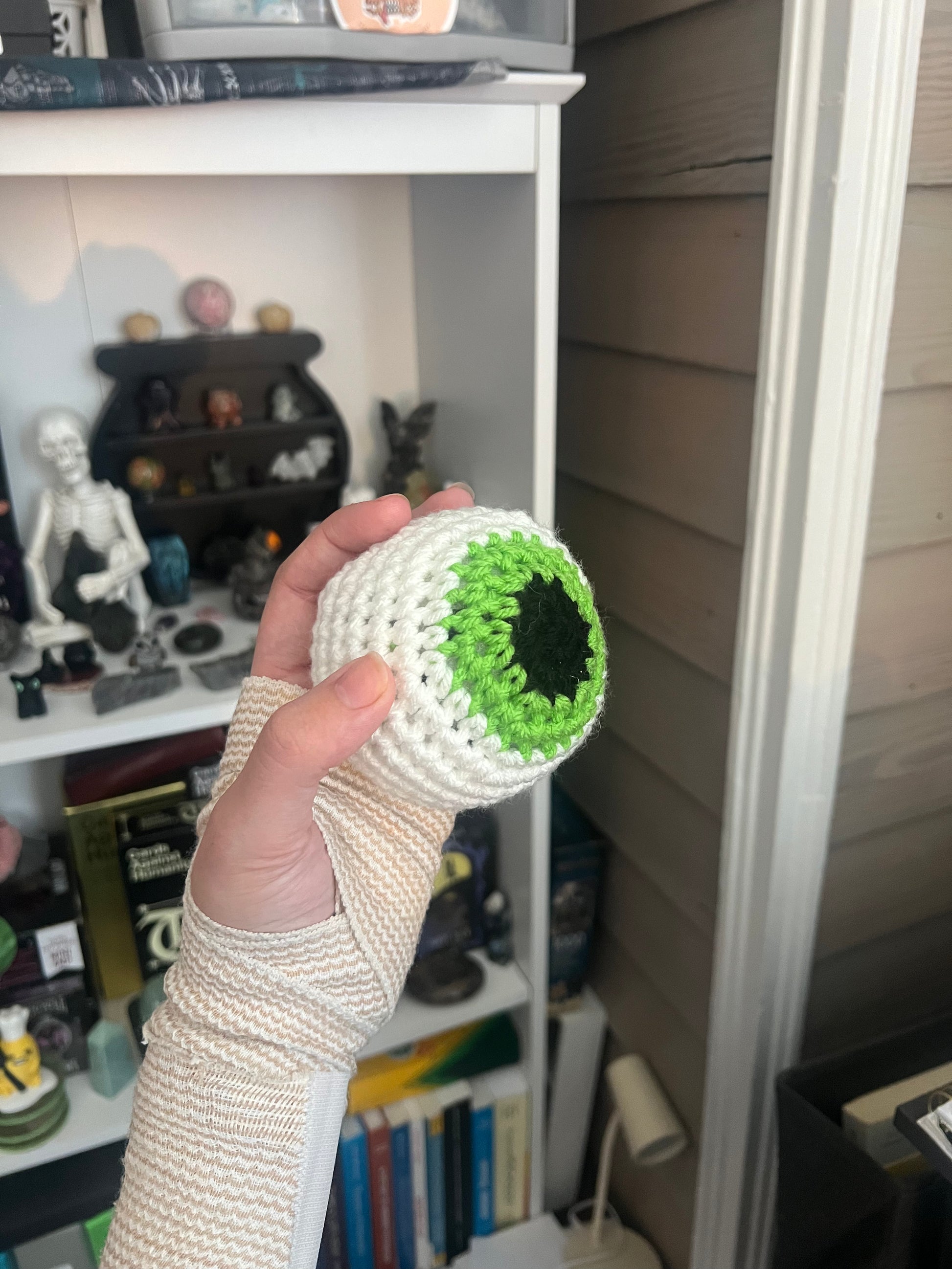 A custom pattern by Blue, the perfect decoration or stressball this spooky season! There are 3 types, 2 are the traditional colors of blue and green irises but the last one is a scream, evil eyes with a red iris and grey instead of white.