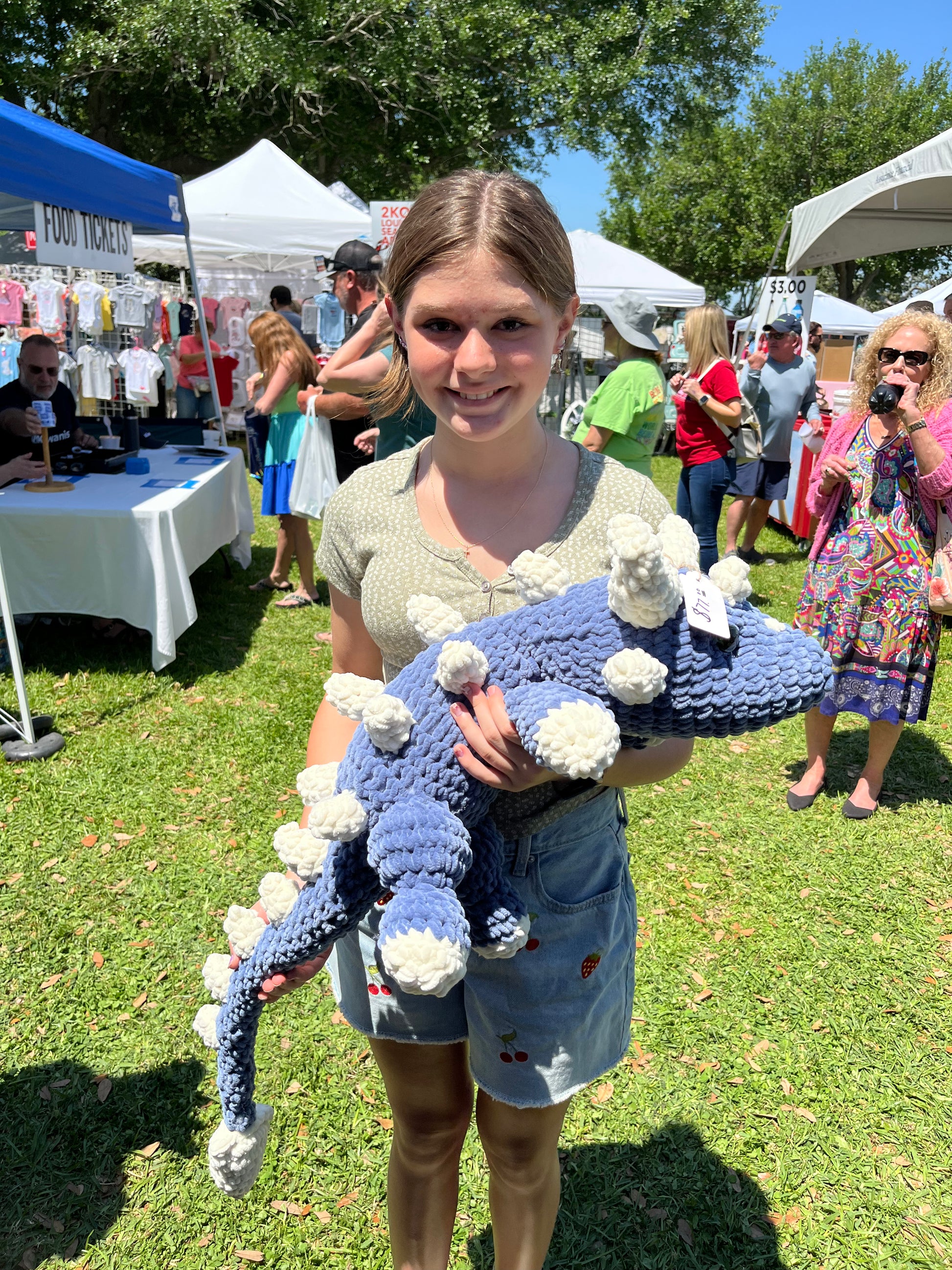 Dragon #3 of Dragon Takeover Month with Duckin' Around Crochet! Shaw is a four-legged, zero-winged dragon, otherwise known as a drake. He has a dark blue body, green eyes, and soft yellow accents.